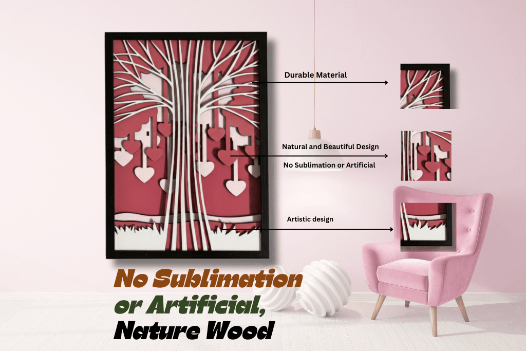 | Design | 3D layered wooden tree with heart-shaped accents |
