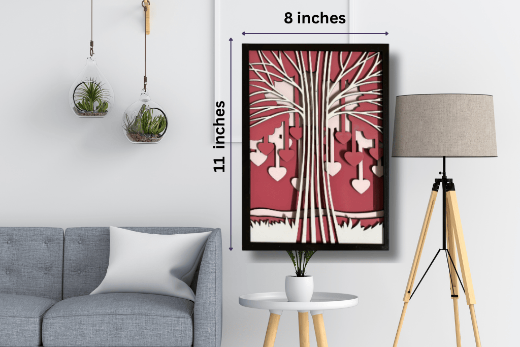 Handcrafted 3D layered wood wall art featuring a Tree of Hearts design in pink or purple. Framed and ready to hang — a perfect romantic gift for weddings, anniversaries, or Valentine’s Day.