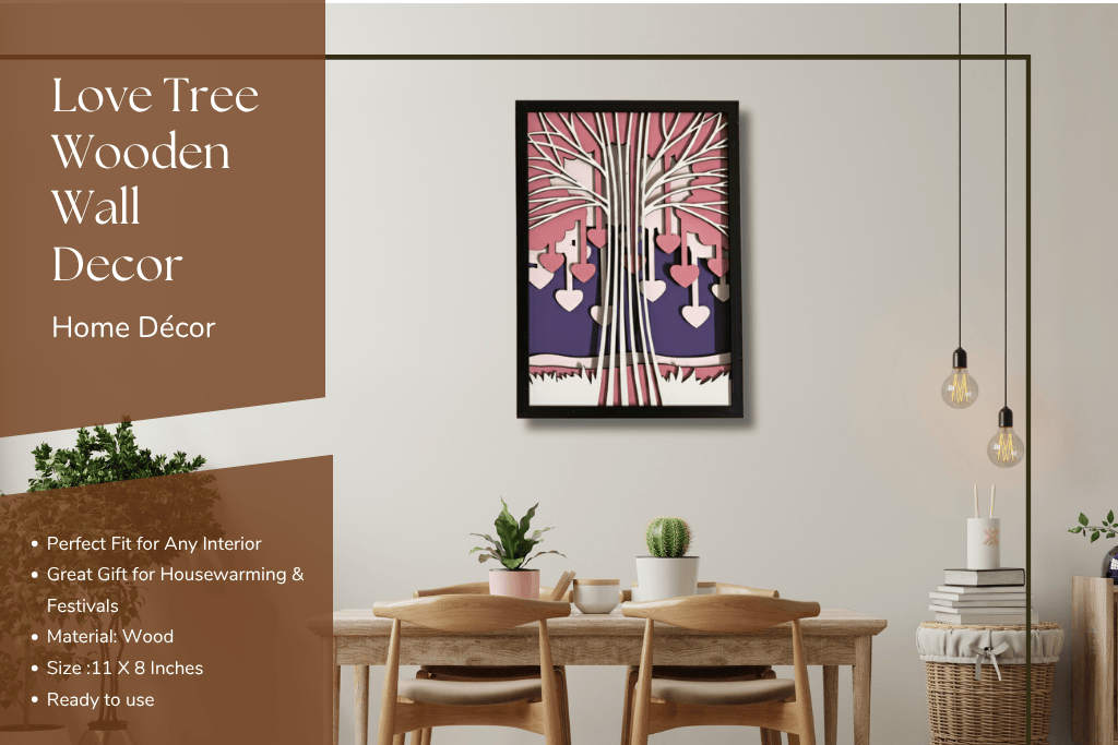 | Design | 3D layered wooden tree with heart-shaped accents |