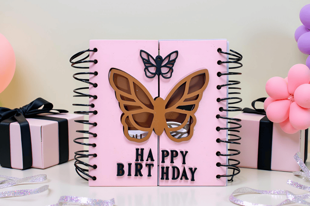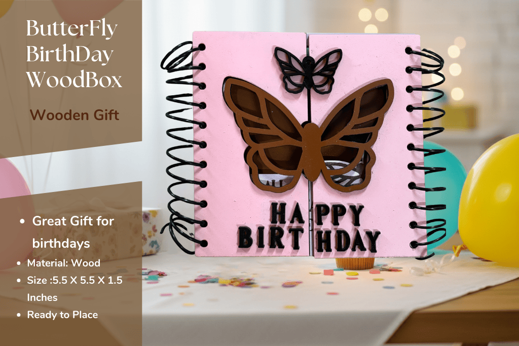 Celebrate life’s special moments with our Handcrafted Butterfly Birthday Card, designed to combine elegance and sentiment. Featuring intricate butterfly cut-outs and bold “HAPPY BIRTHDAY” lettering, this card is more than a greeting—it’s a piece of art.