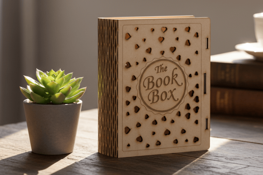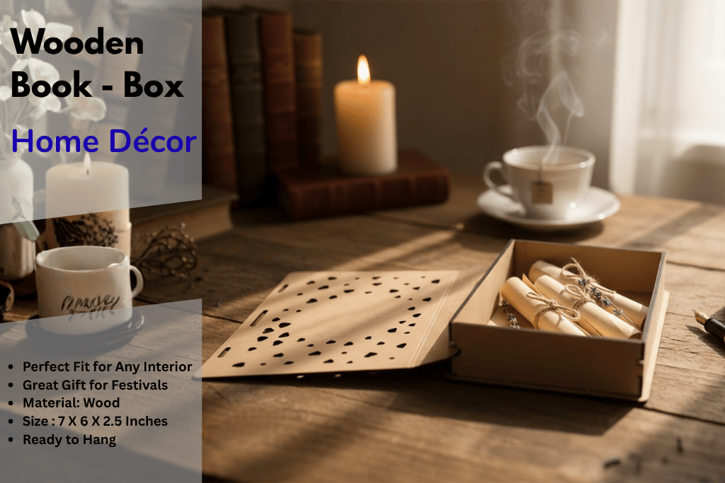 This handmade wooden book box is a beautiful blend of craftsmanship and sentiment. Designed to resemble a vintage book, it features laser-cut heart motifs that evoke warmth, love, and nostalgia. Whether you’re storing letters, trinkets, or gifting something special, this box adds charm and purpose to any space.