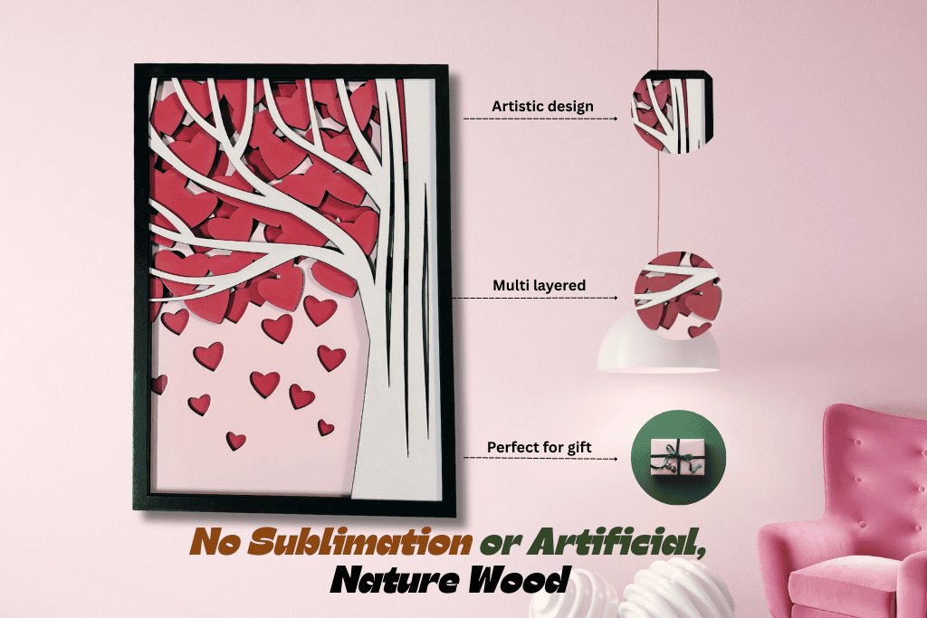Love Tree Wooden Wall Art – 5-Layered Heart Design Home Décor